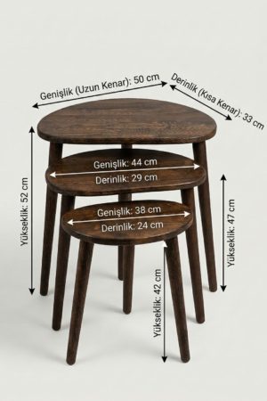 3’lü Masif Doğal Ahşap Zigon Sehpa Takımı Organik Form Modern Yan Sehpa