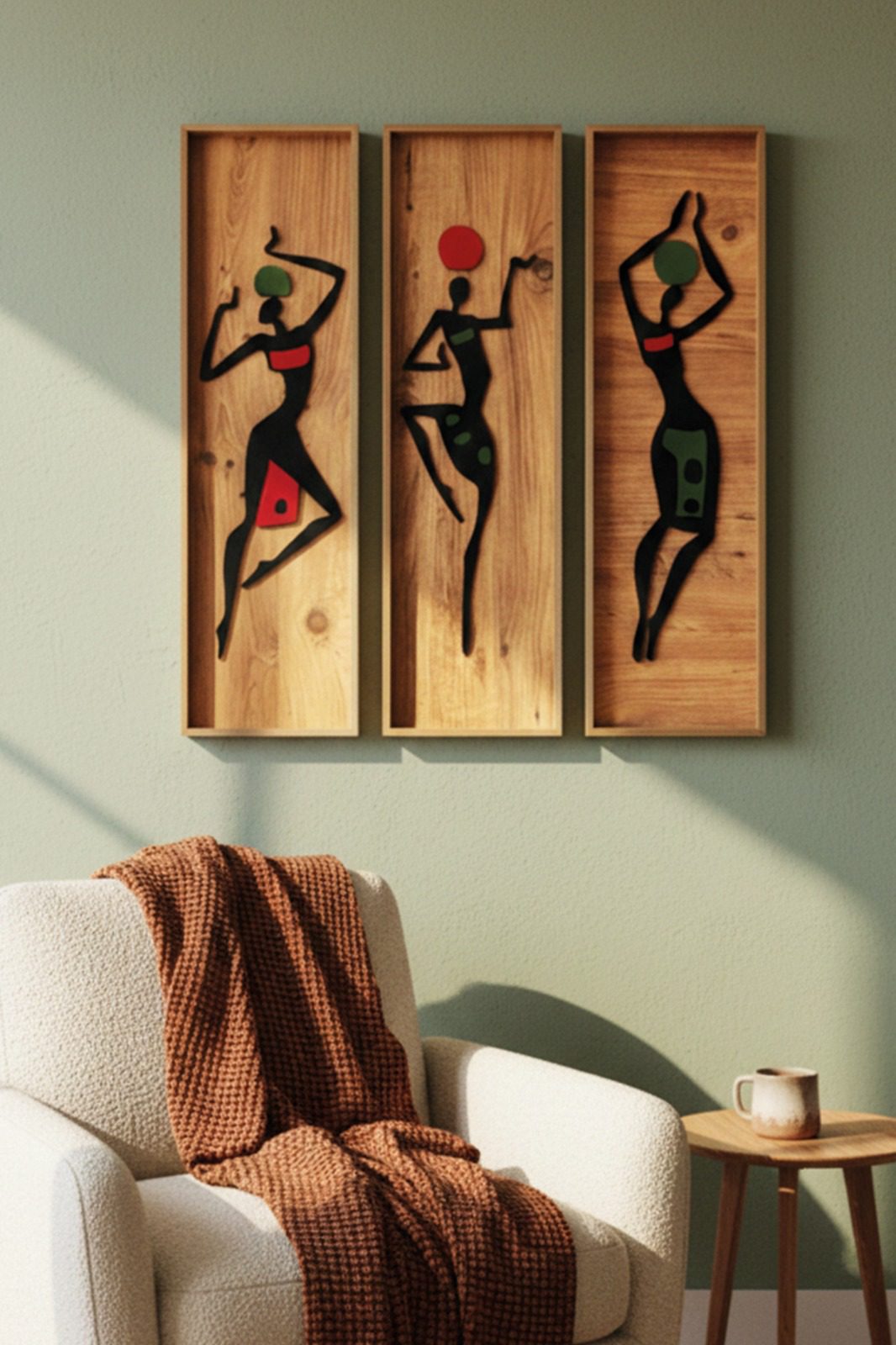 Etnik Zarafet ve El İşçiliğinin Buluşması: 3’lü Modern Ahşap Tablo Seti