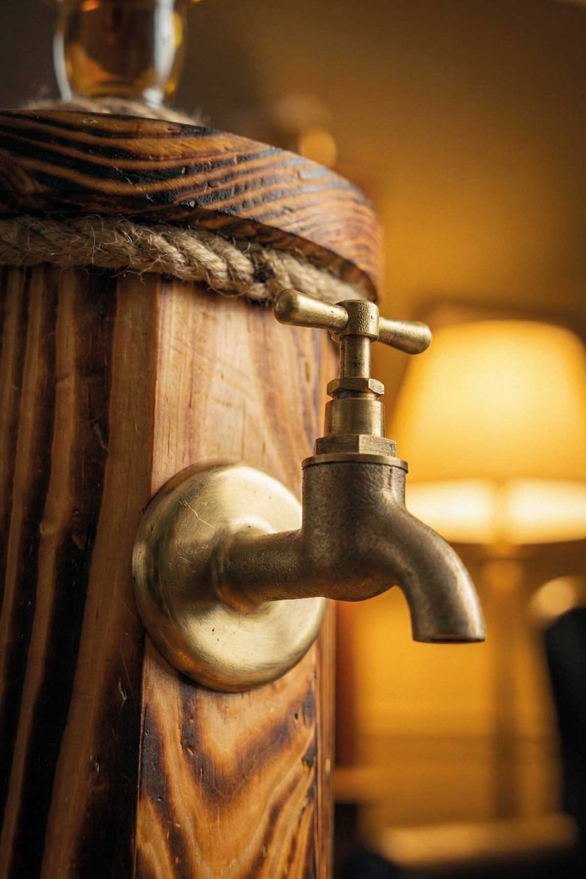 Yaşam alanlarınıza, ofisinize veya sunum köşelerinize prestij katacak bu özel tasarım, doğal çam ağacından tamamen el işçiliği ile üretilmiştir. Rustik dokusu ve şık metal musluk detaylarıyla bulunduğu ortama zengin ve dekoratif bir hava katar.