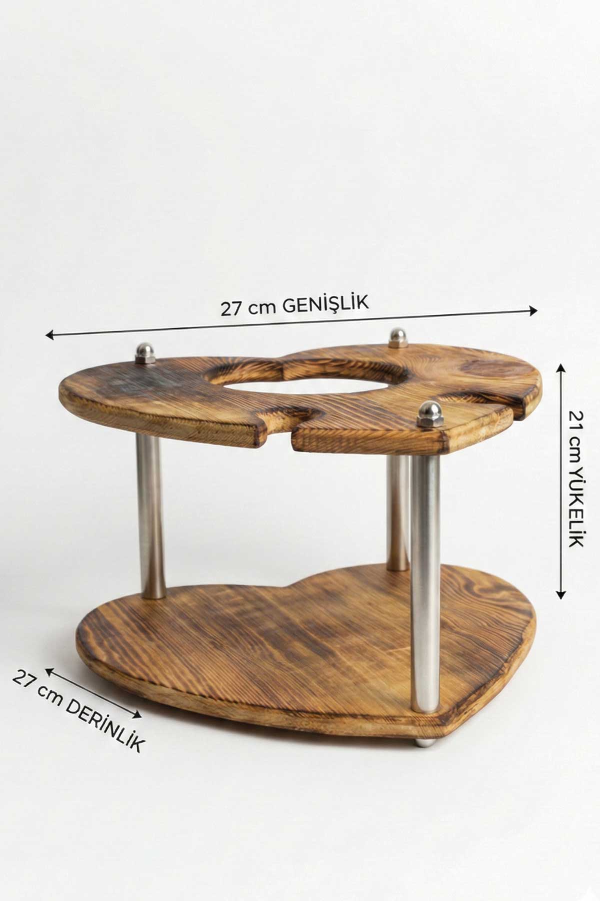 En özel anlarınıza şahitlik etmesi için tasarlandı. Tamamen el işçiliği ile doğal çam ağacından üretilen bu kalp formundaki sunum standı, şık sofraların ve kutlamaların vazgeçilmezi olacak. Ahşabın doğallığı ve özel yakma desenleri, metal detaylarla birleşerek masanıza sıcak ve rustik bir hava katar.