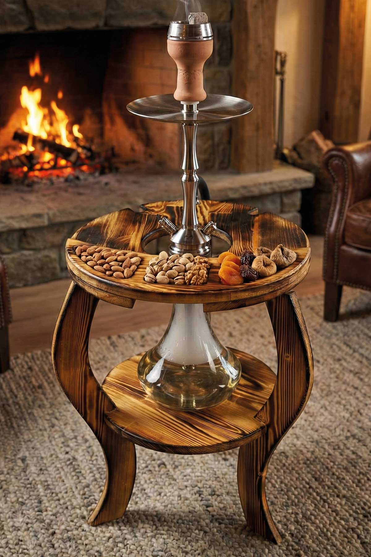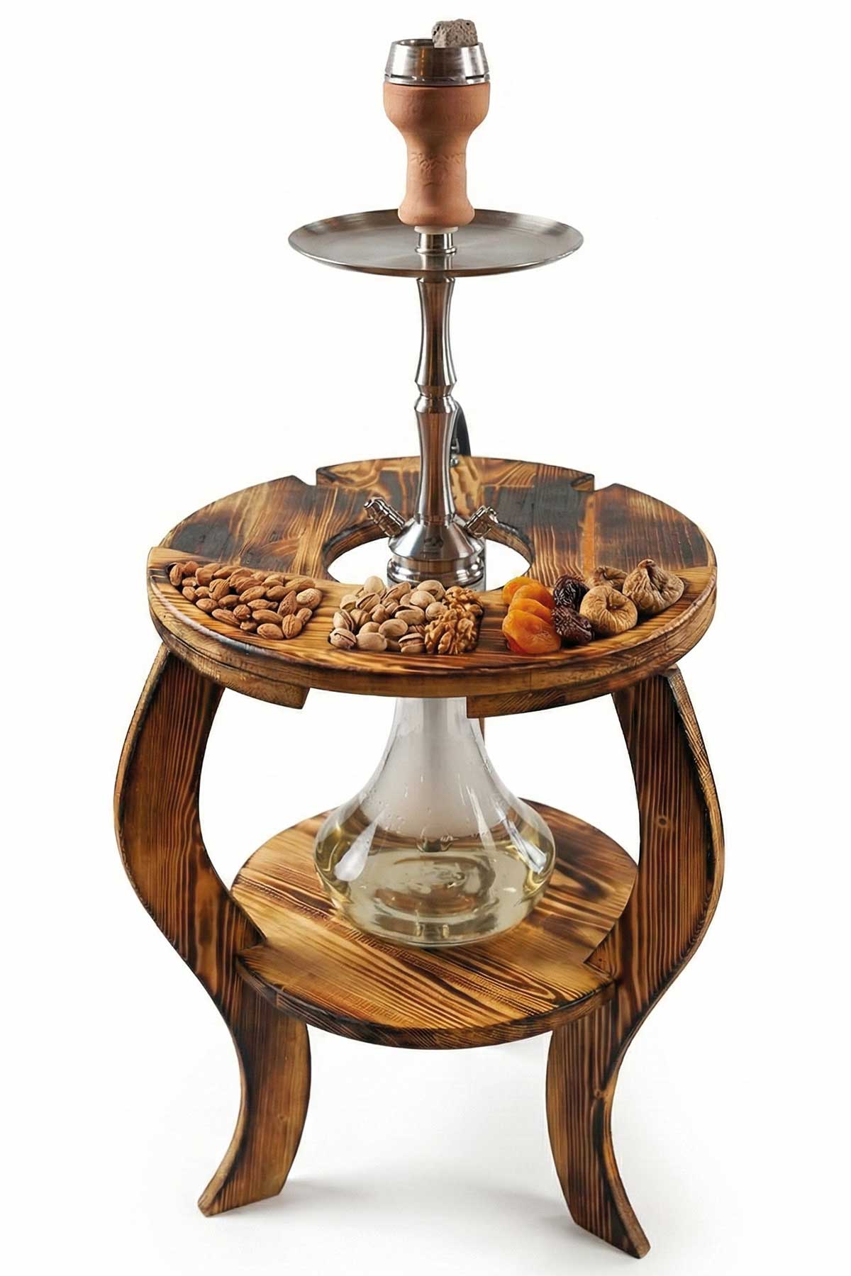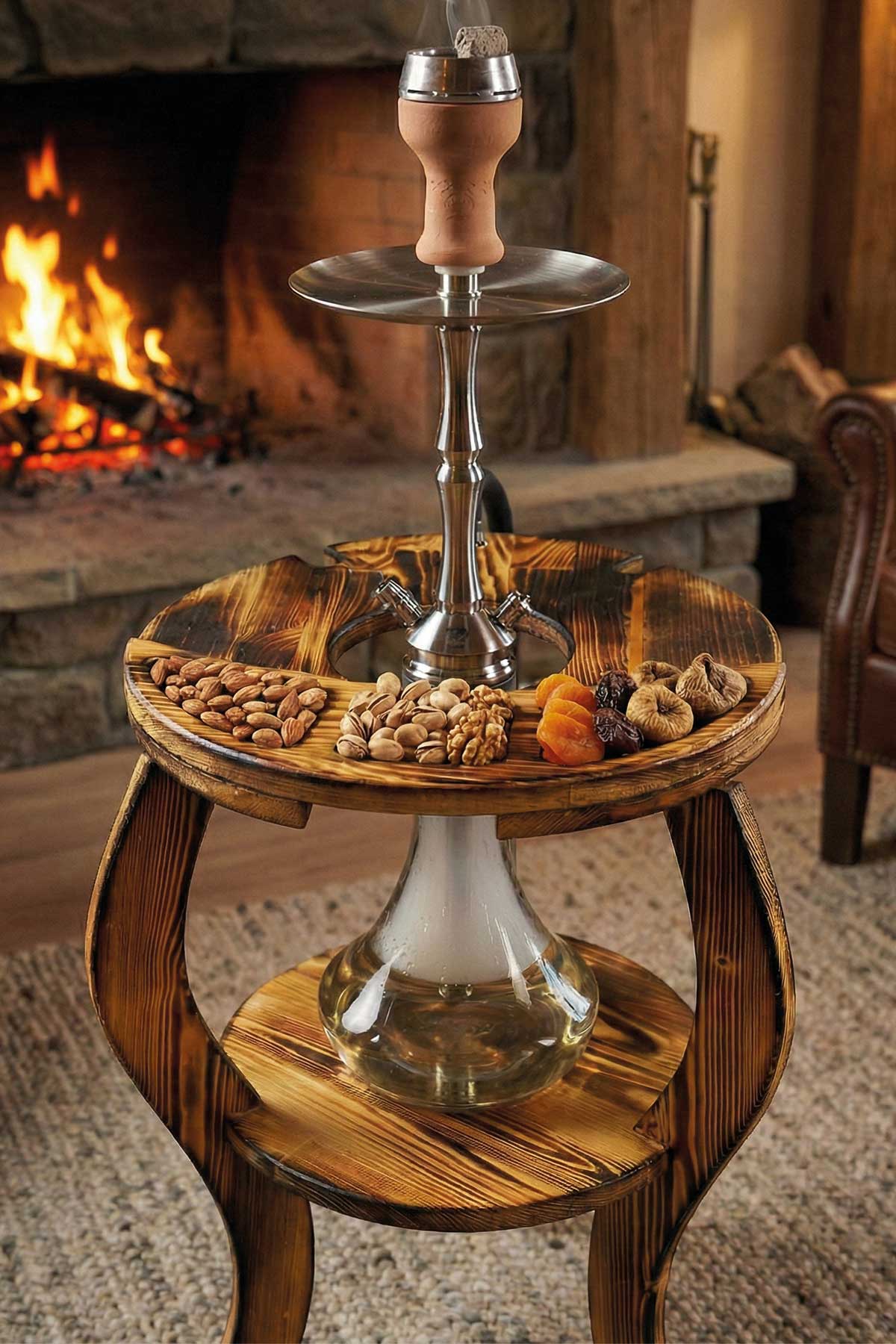Nargile keyfinizi bir ritüele dönüştürün. Standart sehpalarda yaşanan yer darlığına ve dağınıklığa son veren bu özel tasarım, nargile tutkunları için “her şey elinin altında” konforunu sunuyor. Tamamen doğal çam ağacından el işçiliği ile üretilen ve yakma tekniği ile desenleri belirginleştirilen bu stand, salonunuzun veya bahçenizin en dikkat çeken parçası olacak.