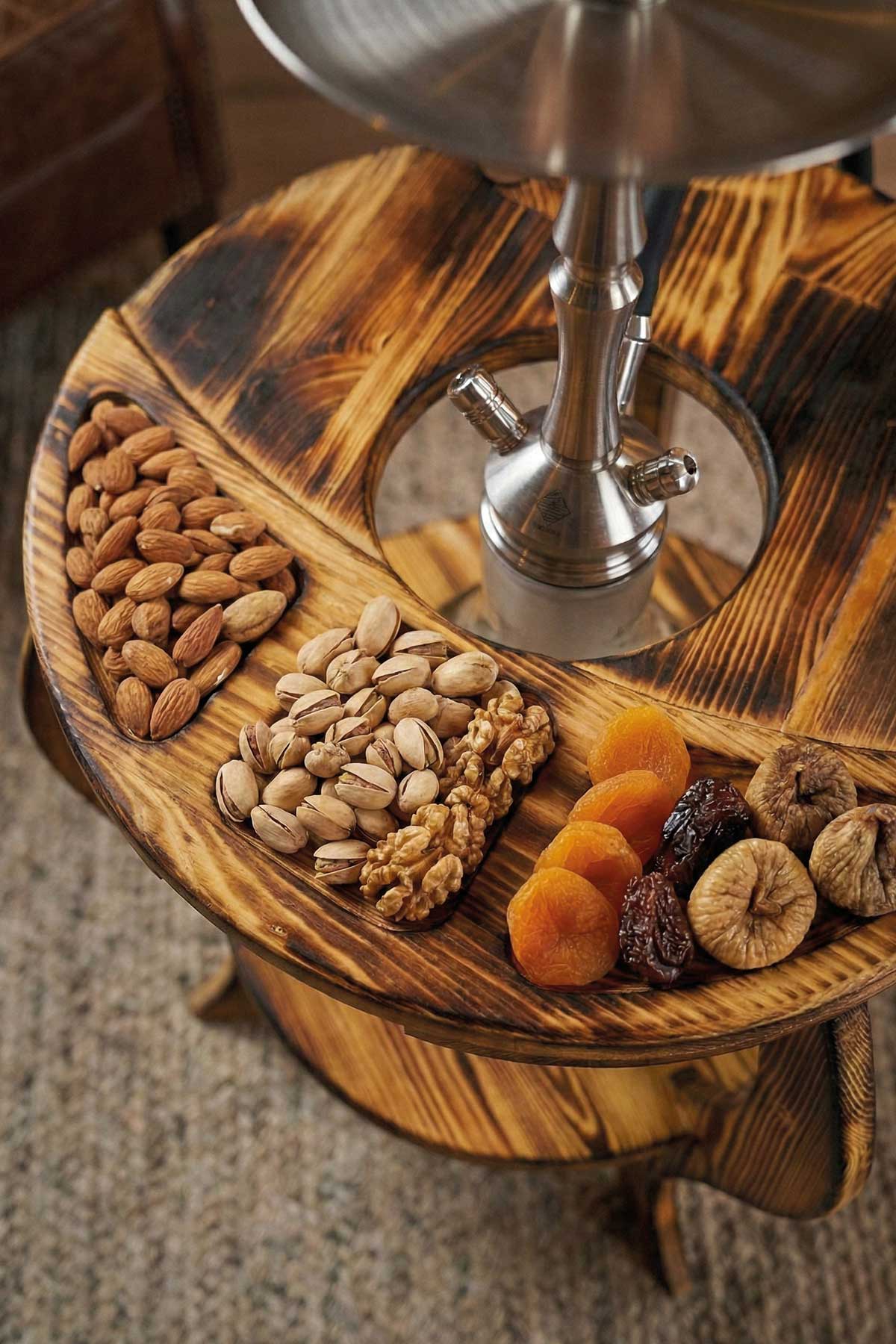 Kapasite: 1 Adet Nargile + 2 Adet İçecek + 3 Bölme Çerez Alanı.