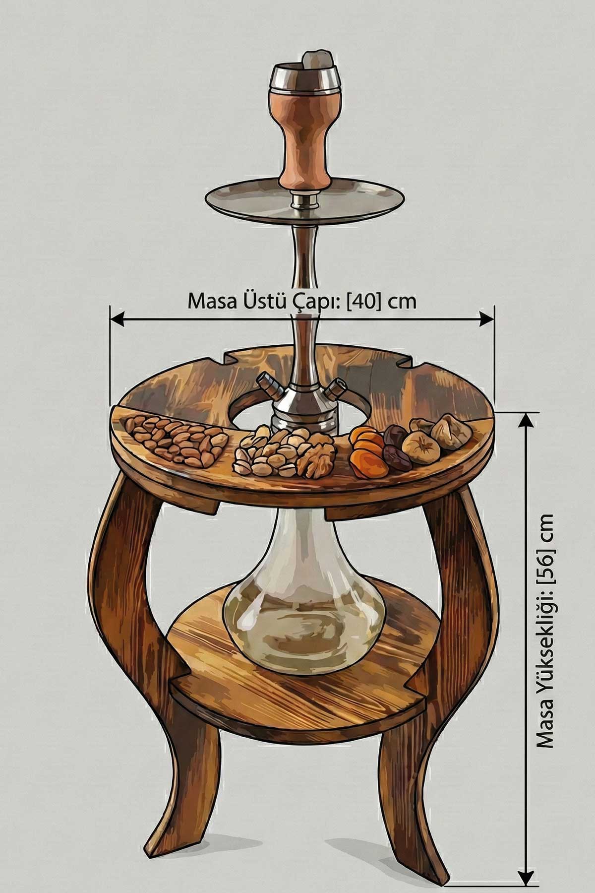 Paket İçeriği: 1 Adet Ahşap Nargile Sunum Sehpası. (Görseldeki nargile ve aksesuarlar dekor amaçlıdır, fiyata dahil değildir.)