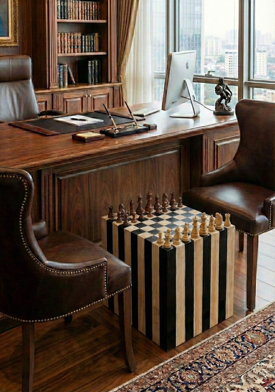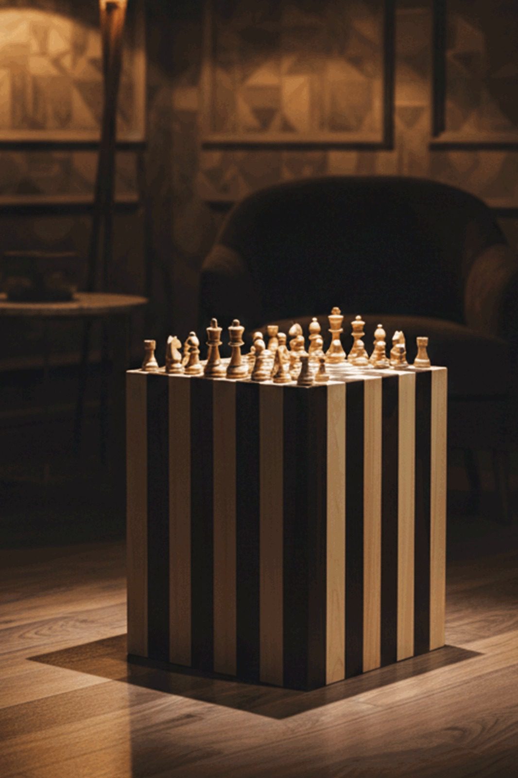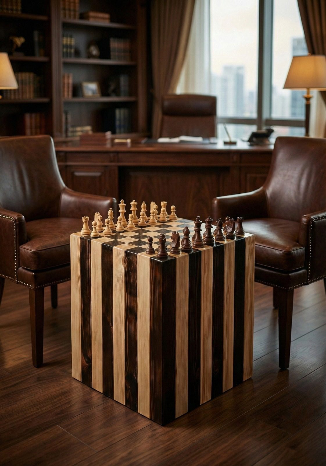 Lüks Ahşap Satranç Masası – Büyük Boy Dekoratif Küp Tasarım