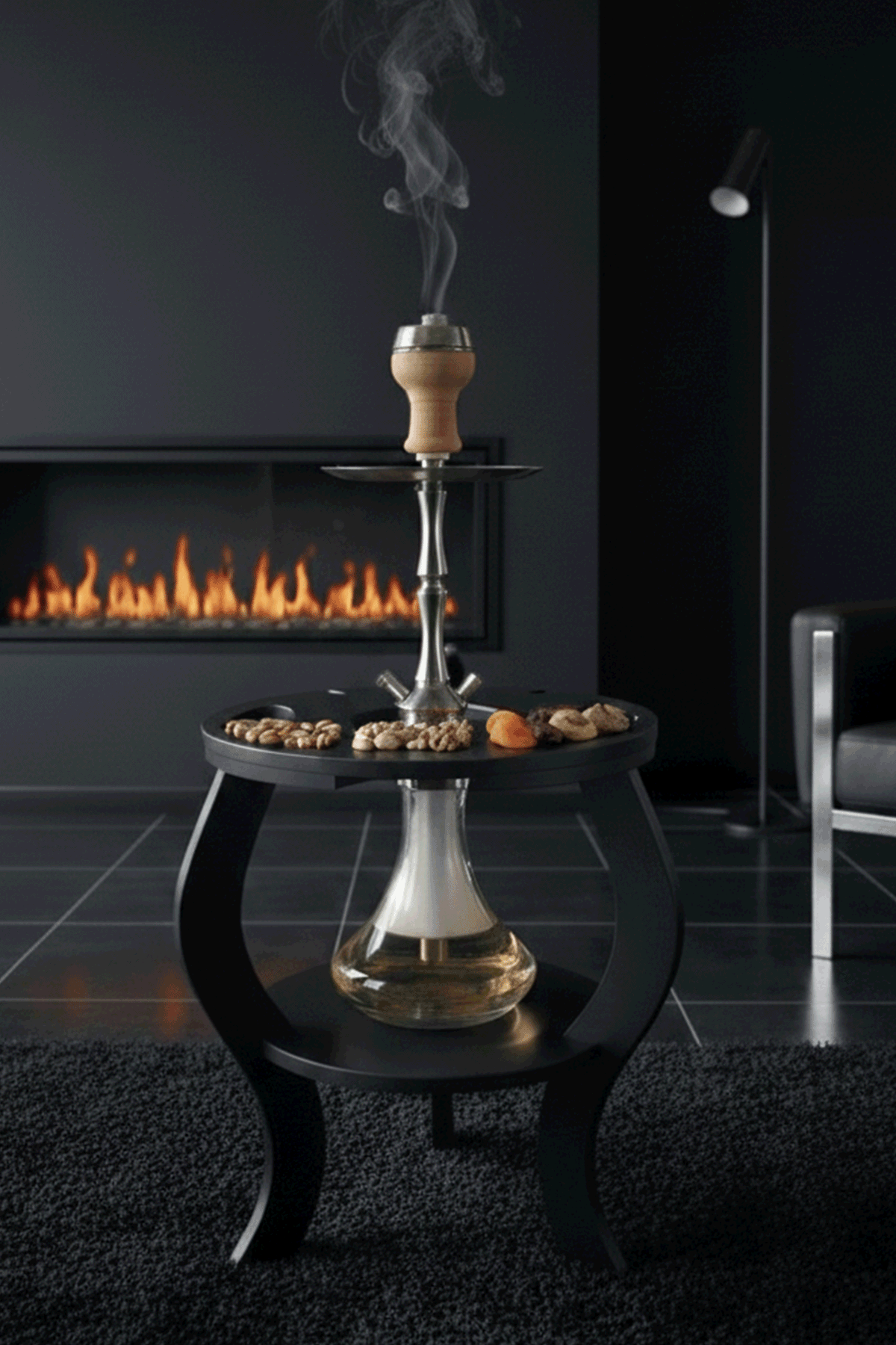 Lüx Siyah Nargile Standı – Çerezlikli ve Kadehlikli Özel Tasarım Sunum Sehpası Nargile Sehpası