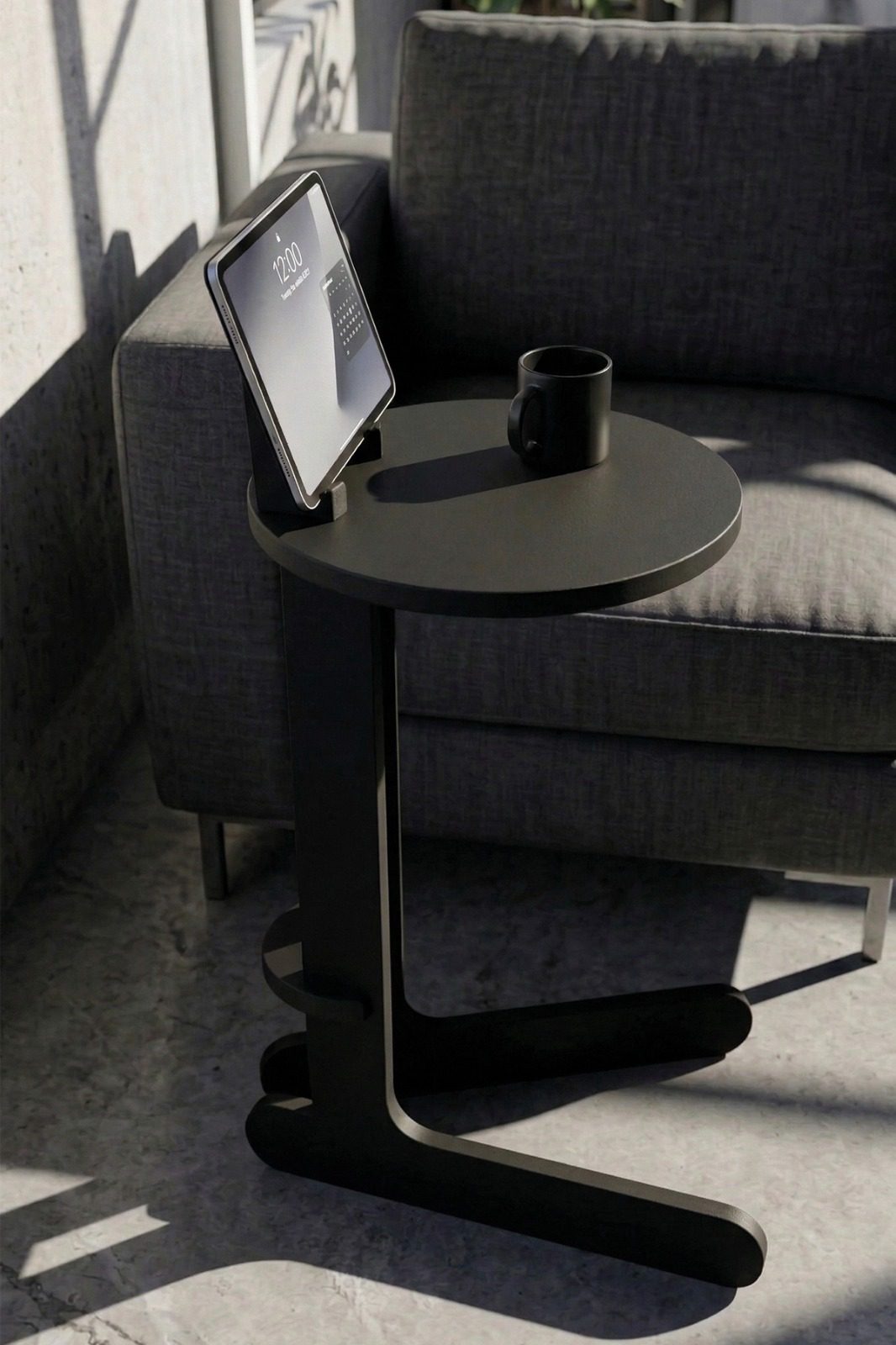 Paket İçeriği: 1 Adet Siyah Tablet Standlı C Yan Sehpa. (Not: Görsellerde yer alan tablet, kupa ve diğer aksesuarlar dekorasyon amaçlıdır, ürüne dahil değildir.)