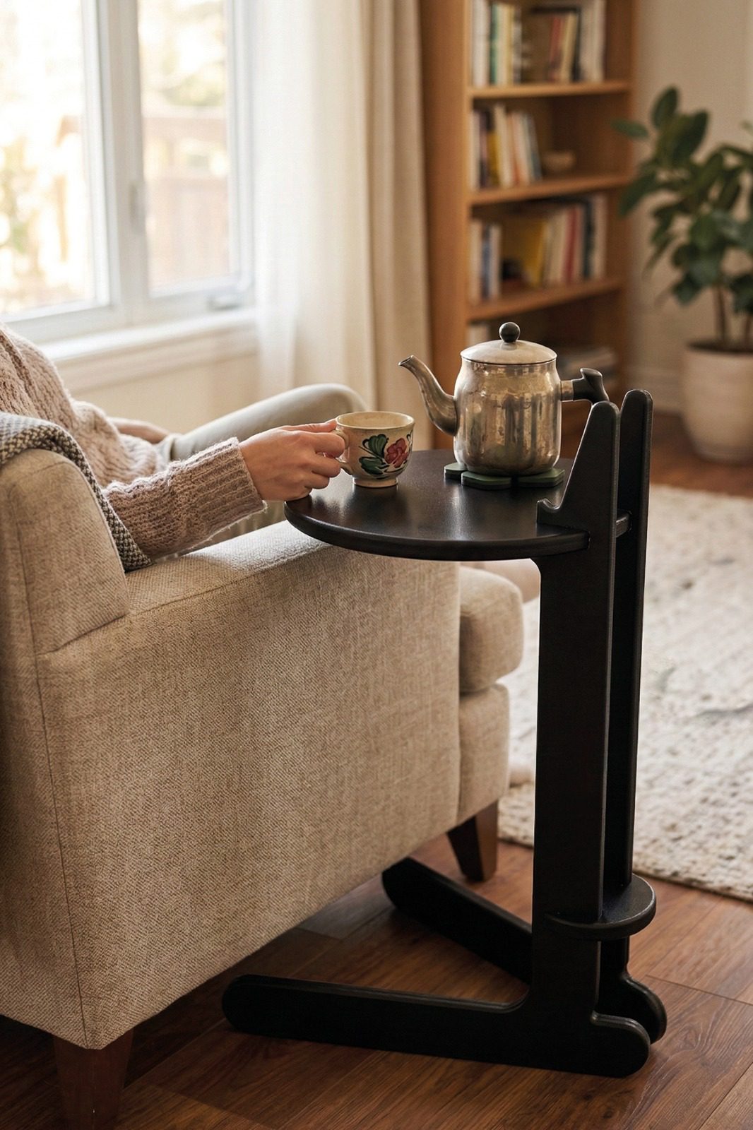 ☕ Çok Yönlü Kullanım: Laptop masası, kahve sunum sehpası, kitap okuma köşesi veya atıştırmalık standı olarak çok amaçlı kullanılabilir.