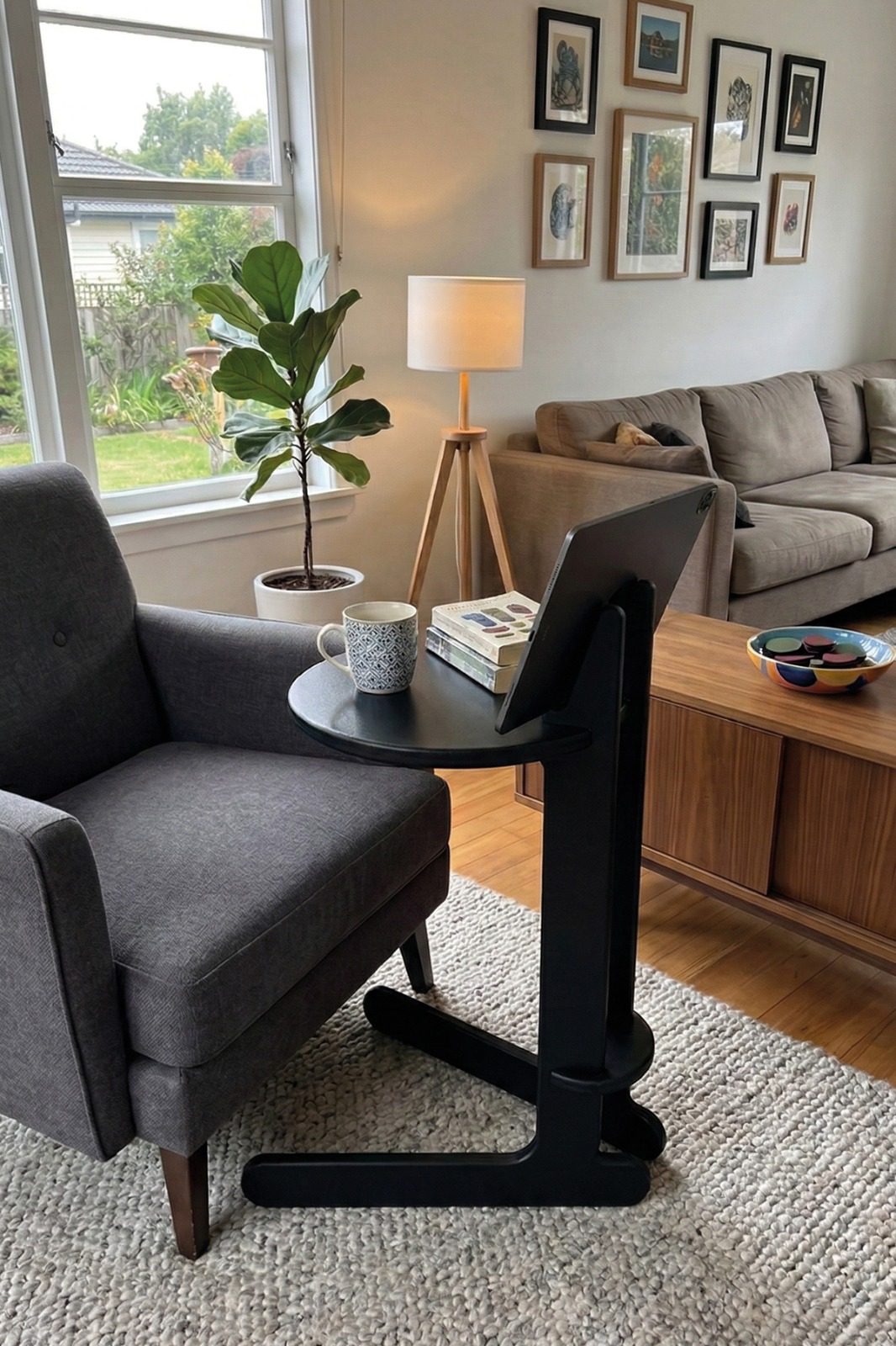 Hem çalışırken hem de dinlenirken elinizin altındaki en büyük yardımcı! Ergonomik “C” formu sayesinde koltuğunuzun veya yatağınızın altına kolayca girerek size doğru yaklaşan bu özel tasarım sehpa, yaşam alanlarınızda maksimum konfor ve alan tasarrufu sağlar.